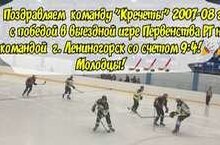 Поздравляем команду "Кречеты" 2007-2008 гг.р. с победой в выездной игре Первенства РТ по хоккею с командой г. Лениногорск со счетом 9:4! Молодцы!