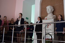 Сегодня, 15 февраля 2017 года, в ГАПОУ «Мензелинский педагогический колледж имени Мусы Джалиля» состоялся торжественный митинг, посвященный 111- ой годовщине со дня рождения известного татарского поэта – героя Мусы Джалиля. Студенты первых курсов уже с утра вели вахту памяти у бюста поэта. Перед студентами и обучающимися 7-9 классов выступили директор мемориального музея Мусы Джалиля Григорьева А.В., заместитель директора по воспитательной работе Черезова Л.Г., заместитель директора по научной работе Гилязетдинова Г.М.. После возложения венка к бюсту, студенты читали стихотворение поэта «Мои песни» на разных языках народов России. По традиции, после окончания митинга, студенты первых курсов возложили венок к памятнику поэта в парке Мусы Джалиля.