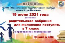 Родительское собрание для желающих поступить в 7 класс 11.06.2021