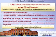 ГАПОУ "Мензелинский педагогический колледж имени Мусы Джалиля" объявляет набор в 7 класс "Психолого-педагогической направленности 07.06.2023