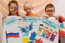 3 ноября в МБДОУ Старомазинский детский сад "Солнышко" прошло мероприятие ко Дню народного Единства". Была проведена беседа о истории возникновения праздника, показана презентация о великих людях страны, о главном городе Москва, о ёё достопримечательностях, о том,что наша страна многонациональна . Дети более конкретнее узнали о Минине и Пожарском и о их Великом подвиге, повторили символику нашего государства. Совместно с воспитателем сделали плакат "Мы вместе, мы единое целое".