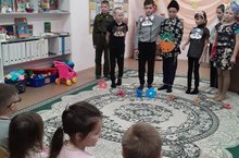 С библиотекарем Пермяковой О.А. дети поиграли в русские и татарские народные игры, посмотрели сказку. С большим вниманием дети прослушали русскую народную сказку "Волк и лиса". Просмотрели мультфильм "Снегурка".