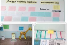 В рамках декады естественно-географического цикла в фойе школы создан уголок по предметам: география, биология, химия. Представлена выставка проектных и исследовательских работ разных лет по географии, биологии, экологии и истории., там же проводится акция "Собери батарейку-сохрани жизнь".