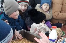 Дали старт Масленичной неделе. Ребята 2А класса (кл.рук.Юлдашева Е.А.) с удовольствием угощаются блинами