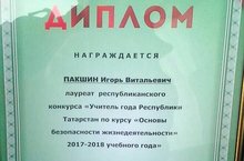 6 апреля в г.Казань состоялся заключительный этап конкурса «Учитель года 2018» в номинации «Учитель ОБЖ». Поздравляем нашего Игоря Витальевича Пакшина со званием Лауреата Республиканского этапа конкурса. Достойное выступление! Успехов вам в работе!