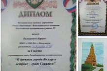 В муниципальном этапе Республиканского конкурса рисунков«О древнем городе Болгар и острове - граде Свияжск» Камашева Карина и Петров Егор заняли I место.Работы отправлены в Казань.