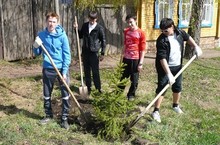 25, 26 апреля 2012 года учащимися МБОУ "СОШ №2" г. Мензелинска организована посадка деревьев по улицам М.Джалиля, Шамова и вокруг здания школы в рамках Всероссийского месячника по благоустройству территории