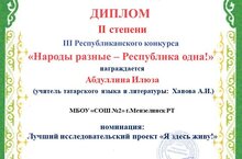 Ученица средней школы №2 И. Абдуллина (Ханова А.И.) стала призёром III Республиканского конкурса "Народы разные - Республика одна!"/ 2 нче урта мәктәп укучысы И. Абдуллина (Ханова А. И.) "Халыклар төрле - Республика бер!" конкурсында призёр булды