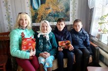 Учащиеся 7 б класса вместе с заместителем директора по воспитательной работе Е.С. Поповой вручили подарки от Президента Республики Татарстан вдовам Великой Отечественной войны 1941-1945 гг.