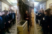 5 февраля 2018 года в рамках месячника оборонно-массовой работы 7 б класс под руководством учителя истории и обществознания Е.С. Поповой посетили краеведческий музей г. Мензелинска. Цель экскурсии: воспитание патриотизма и любви к Родине.