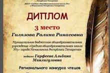 В МБОУ «СОШ №1» был организован региональный конкурс чтецов «Традиции живая нить», посвященный Году культурного наследия народов России. Учащиеся должны были подготовить стихотворения о Родине, о своей республике. В этом конкурсе чтецов приняли участие и учащиеся нашей школы. Ученик 1Б класса Костюнин Данил (учитель Тимиркаева О.А.) стал юным участником этого конкурса, а ученица 3В класса Гилязова Ралина (учитель Гарфеева А.М.) заняла 3 место. Желаем им дальнейших успехов!!!