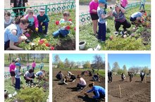 Классные руководители совместно с родителями и учащимися вырастили рассаду, а Яндуганова Т.В с хорошим вкусом, правильно подобрала и разместила цветы . В огороде высеяна морковь, свёкла, тыква, кабачки. Осталось ждать тёплого лета. А мы во время летней практики поддержим рост овощей и цветение клумб. -