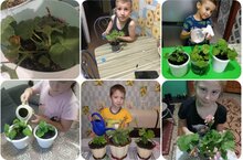 В начале октября ребята посадили герань в горшочки. Сейчас ребята ухаживают, поливают и наблюдают за её ростом. -