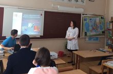 В связи с проведением Всероссийской акции по борьбе с ВИЧ-инфекцией, приуроченной к Всемирному дню памяти жертв СПИДа, в нашей школе был проведен классный час для учащихся девятых классов. Лаишева В.В., медсестра школы, рассказала о вирусе иммунодефицита человека, путях передачи инфекции и мерах профилактики заболевания. А также она сообщила, что общаться с зараженными людьми можно и нужно, поскольку опасное заболевание не передается через рукопожатия, а также воздушно-капельным путем. Лаишева В.В. говорила о Дне памяти жертв СПИДа. Подведя итоги классного часа, учащиеся прикололи на одежду Красные ленточки – символ борьбы со СПИДом.