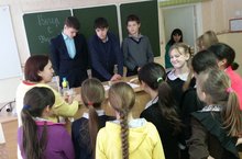 21 декабря Эльвира Ивановна Шамсиева организовала мероприятие "Вечер с физикой". Учащиеся 8Б класса: Зайнуллин Даниил, Юзыкаев Раиль, Прилуков Кирилл показали физические опыты для учащихся 5-х классов. Данные опыты в занимательной форме знакомят учащихся с разнообразными применениями законов физики, заинтересовывают учащихся младших классов этой наукой. Ведь не зря арабская пословица гласит: “Один опыт стоит тысячи слов”.
