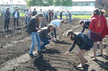Сегодня учащиеся школы вышли на посадку основных сельскохозяйственных культур для школьной столовой.