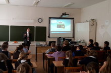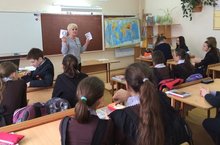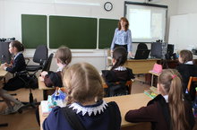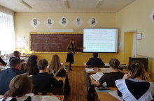 21 апреля учитель русского языка и литературы - Кривенкова О.Г. провела открытый урок русского языка в 9Б классе с применением информационно – коммуникационных педагогических технологий по теме: «Сложные предложения с разными видами связи». После просмотра учебного видеоролика по теме урока, ученики выполняли тестовые задания по интерактивной компьютерной презентации для подготовки к ОГЭ; строили схемы предложений с разными видами связи; находили в тексте бессоюзные сложные предложения, сложносочинённые и сложноподчинённые предложения. За урок выполнен большой объём учебного материала, ученики активно отвечали на вопросы учителя.