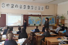 В рамках недели ИКТ Горохова Т.Л. провела урок в 5А, Б классе по теме "Вода на Земле".На уроке учащиеся закрепили домашнее задание тестовым контролем в программе майн тест, а также творческого задания путешествия по материкам.Разбор новой темы через презентацию и исследование свойств воды с помощью опытов. Закрепление материала прошло в виде игры "Путешествие Магеллана". Учащиеся проявили активность на уроке. Работали с картой показывая географические объекты, подготовили материал из интернета и географических источников.