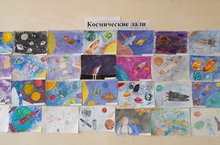 В рамках республиканской акции “108 минут вместе с Юрием Гагариным” в школе организована выставка детских рисунков на тему: «Космические дали»