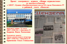Ученица 7А класса Бадриева Фаиза создала проект электронного журнала «Жанры журналистики» на примерах публикаций о МБОУ «Средняя общеобразовательная школа №3» города Мензелинска РТ в районной газете «Мензеля».