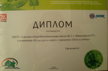 Наша школа приняла участие в IV конкурсе Социальных и культурных проектов проводимых Благотворительным фондом ОАО «ЛУКОЙЛ» и ОАО «РИТЭК». Проект "Путь к успеху" стал победителем в номинации "Культура и спорт".