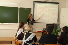 В рамках недели МИФ Архипова Е.А. и Бариева Э.И. 23 января провели интерактивную игру по подготовке к ГИА по математике и физике в 11 классе. Для проведения урока была разработана презентация, которая воспроизводилась с помощью интерактивной доски. Ученики 11 класса были разбиты на 3 команды и соревновались между собой.