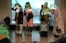 Татар теле һәм әдәбияты укытучылары Гарфеева А.М. һәм Шәйхетденова А.М. җитәкчелегендә 1 нче һәм 4 нче сыйныфларының татар төркеме укучылары А.Алишның “Сертотмас үрдәк” әкиятен сәхнәдә куйдылар. Бу курчак театрын бүген 4 нче сыйныф укучылары карадылар. Спектакль бик кызыклы булды, артистлар бик тырышып осталыкларын күрсәттеләр.