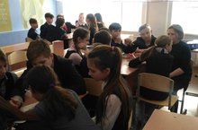 Сегодня учителя татарского языка и литературы Гарфеева А.М. и Тимиркаева О.А. провели урок- игру в 6А и 6В классах по теме «Татарстанда яшәүче милләтләр». Учащиеся вспомнили лексику по изучаемому разделу «Татарстан», отвечали на вопросы, потом прошла викторина. 3 команды соревновались между собой, тем самым закрепляли знания по татарскому языку. В итоге первая команда «Зирәкләр» стала победителем, а оставшиеся две команды заняли второе место, так как заработали равное количество баллов.