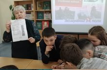 Сегодня учащиеся 6Б класса (кл.руководитель Коростина Н.Ю.) побывали на встрече в рамках акции "Дети войны" с Петровой Людмилой Витальевной.Отец Людмилы Витальевны,Виталий Петрович ушёл на фронт,когда девочке был всего один месяц. С фронта отец так и не вернулся и спустя десятки лет,в 2002 году пришло известие,что в Можайском районе под Москвой нашли медальон с запиской,который принадлежал Петрову Виталию Петровичу.