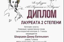 Ученик 7б класса СОШ №3 Шварцман Дамир (учитель Тимиркаева Ольга Анатольевна) принял участие в V республиканском творческом конкурсе " В созвездии А.С.Пушкина и Г.Тукая".