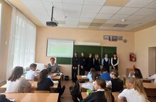 Отряд 8а класса продолжает знакомить учеников школы с героями Советского Союза 03.05.2023