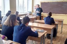 В рамках урока Тимерханов А.Ф. познакомил учащихся с порядком поступления в высшие учебные заведения Государственной противопожарной службы МЧС России (г. Москва, Санкт-Петербург, Екатеренбург, Иванового). -