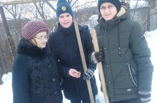Учащиеся школы - члены отряда "Подросток" оказали помощь пожилой женщине - Котельниковой А.С., очистили от снега территорию около ее дома.