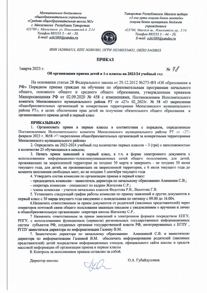 Прием в 1-ый класс / 1 сыйныфка кабул итү