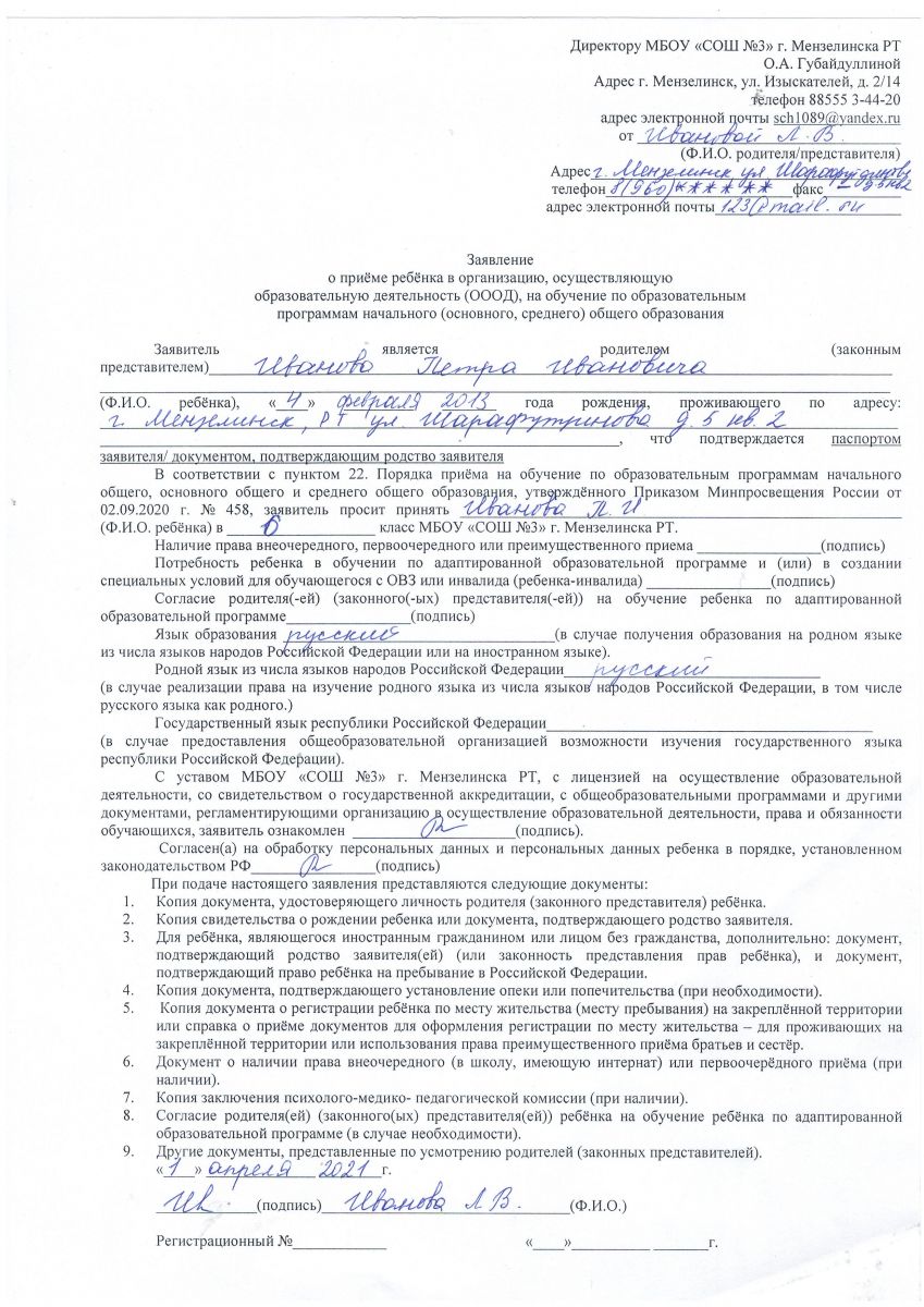 Подача заявления на приём в школу / мәктәпкә кабүл итү турында гаризалар