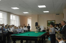 11 ноября воспитанники в сопровождении директора школы-интерната Назмиева К.Р. посетили презентацию социального проекта «Бильярд детям», которая состоялась в ГБС(К)ОУ Казанской специальной (коррекционной) общеобразовательной школе-интернат I-IIвида им. Е.Г. Ласточкиной. На мероприятие были приглашены спортсмены, которые провели мастер-класс по бильярдному спорту, и ответственные лица Федерации бильярдного спорта Республики Татарстан, а также участники социального проекта. Нашей школе был вручен бильярдный стол, 4 кия, а также бильярдные шары.