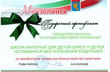25 декабря состоялось торжественное открытие городской елки. Мензелинкая школа -интерната стала победителем конкурса на лучшее оформление территории и получили подарочный сертификат на приобретение техники для благоустройства территории!