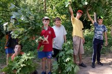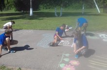 Воспитанники старшего звена выполняли трудовые поручения по обработке сельскохозяйственных культур. После полдника была организована экскурсия на родник "Лесной", младшее звено воспитанников выполняли поделки из природного материала " Природа глазами детей". А затем проводился конкурс рисунков на асфальте.