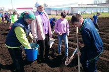 16 мая учащиеся школы-интерната совместно с коллективом вышли на субботник по посадке картофеля.