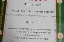 Грамота 1 место. Дидактическая игра "В мире финансов" 12.01.2023