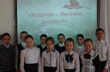 5 сыйныф укучылары мәктәпкүләм линейкада "Кошлар - безнең дусларыбыз!" исеме астында чыгыш ясады.