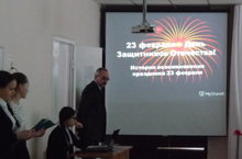 10 сыйныф укучылары 23 февраль - Ватанны Саклаучылар көне бәйрәменең килеп чыгу тарихы белән таныштырды.