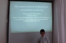 6 сыйныф укучысы Мавлиев Булат "Гаилә альбомында хәрби киемнең тарихы" исеме астында проект эше белән чыгыш ясады.