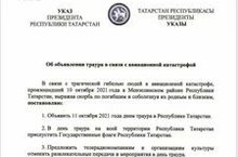 11 октябрьдә Татарстанда Минзәлә янындагы авиаһәлакәттә һәлак булучылар истәлегенә матәм көне дип игълан ителде.