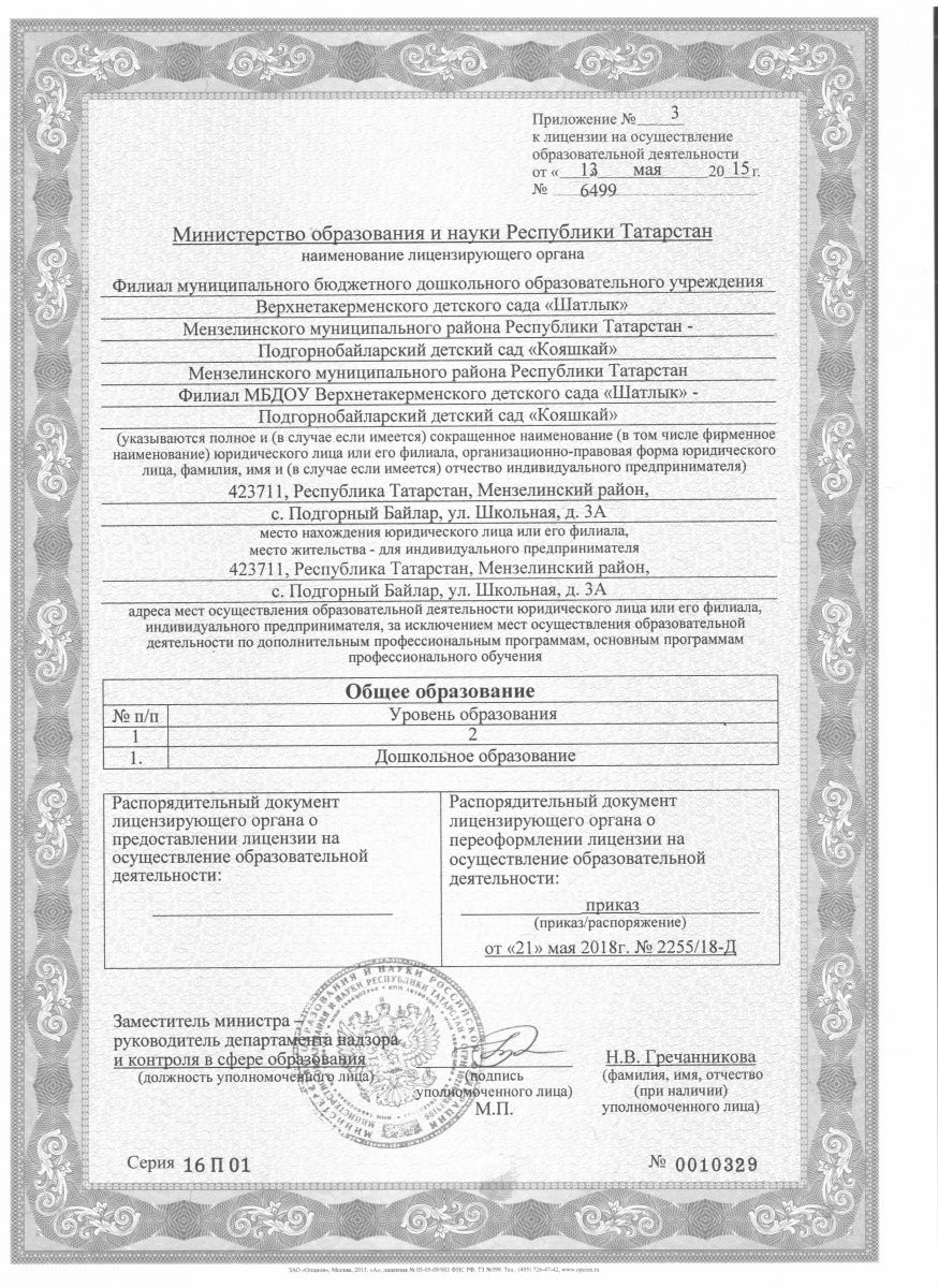 Санитарно-эпидемиологическое заключение филиада Подгоронобайларского детского сада