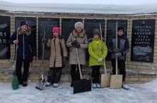 Учащиеся МБОУ «Верхнетакерменская ООШ» очистили памятник от снега