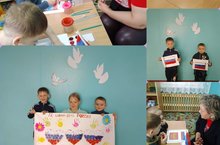 Балалар бакчасында Кадрәк мәдәният йорты җитәкчесе Сафиуллина Ф.,китапханә мөдире Гарнышева А.,тәрбияче Хасаншина Н. әзерлек төркемендә шөгыльләнүче балалар белән "Тынычлык дип тибә йөрәкләр"дигән әңгәмә үткәрделәр.Соңыннан балалар открытка ясадылар.