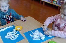 Работая в рамках по модулю Экология в младший группе провели занятие по аппликации на тему "Деревья зимой". Где дети с интересом делали аппликацию с помощью ваты.