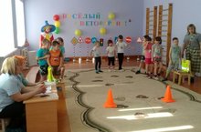 Сегодня состоялось совместное мероприятие в учениками начальной школы и воспитанниками детского сада по обучению правилам дорожного движения. Данное спортивно- развлекательное развлечение "Веселый светофорчик" оченивало строгое жюри представители ГИБДД.