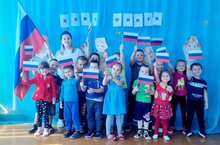 Дети прослушали гимн России, поговорили об истории флага, его значимости, отгадывали загадки, собирали флаг России.
